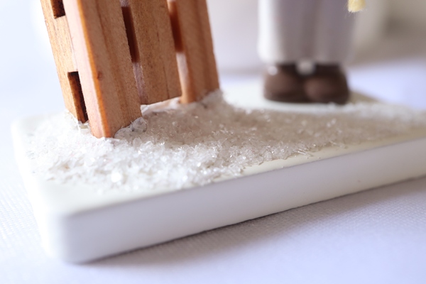 雪の中を遊んできた男の子。帽子にもそりにも雪が舞っています。お友達の男の子や女の子と並べてワイワイさせても。家などの建物の前に立たせてあげても。色々なお話が生まれそうです。