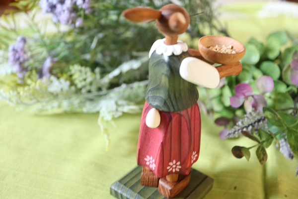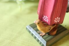 よーく見ると首元のひらひらレース飾りも木を削って作られています。ひときわ手が込んでいて可愛い!