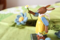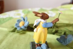 野原でお花を摘んでお母さんにプレゼントかな?よーく見ると首元のひらひらレース飾りも木を削って作られています。ひときわ手が込んでいて可愛い!