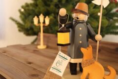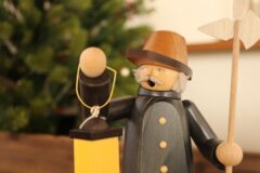 柔らかな表情と落ち着いた色合いの夜警の煙だし人形です。