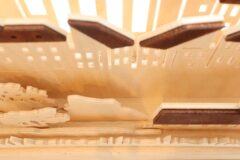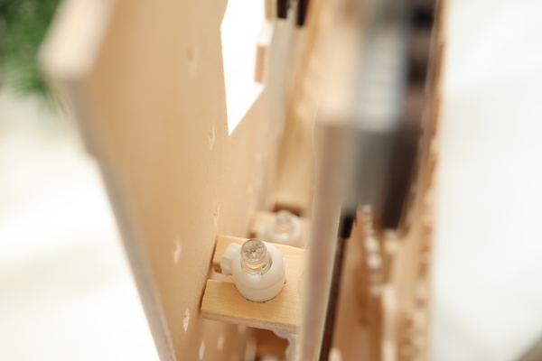その為、輸送途中での衝撃や湿度の高い日本の気候では部品が取れてしまうこともありますが、その場合は木工用ボンドなどを、爪楊枝などの先にほんの少し付けて接着しなおして下さい。