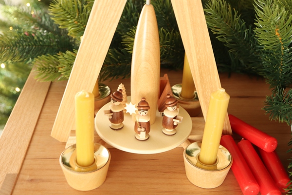 クリスマスピラミッドはウインドミルとも呼ばれ、ドイツの伝統的なクリスマス飾りです。ろうそくで温められた風で羽が回ります。