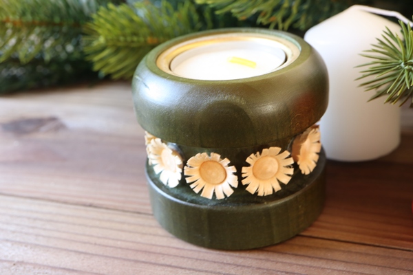 キャンドルスタンドはクリスマスには欠かせないテーブルデコレーション。こちらは削り花飾りなのでイースターアイテムかな?とも思いますがグリーンなのでクリスマスにも出番がありそうです。