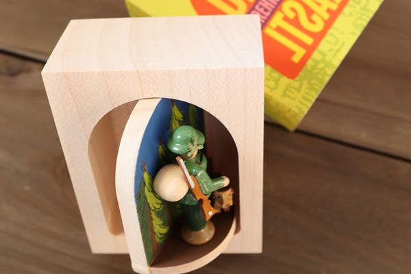 からくり箱の中からは森のおじさん。背景は優しい色合いです。